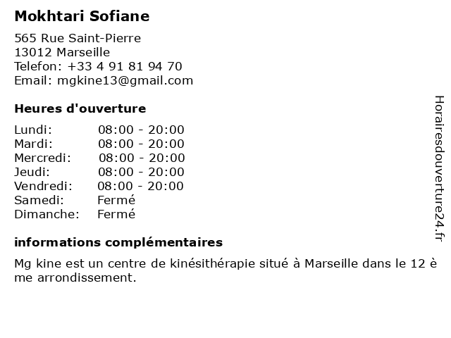 1 Sofiane Mokhtari - Masseur-kinésithérapeute (Distance: 0,00 km) 565 Rue Saint-Pierre, 13012 Marseille kiné, kinésithérapeute, masseur, mokhtari, rééducation, sofiane, soin 3 Dr Laura Mokhtari - Chirurgien-dentiste (Distance: 3,10 km) 255 Avenue du Prado, 13008 Marseille chirurgien, dent, dentiste, docteur, dr, laura, mokhtari, soins 5 Sofiane Ammouri - Masseur-kinésithérapeute (Distance: 7,07 km) 22 Chemin de Palama, 13013 Marseille ammouri, docteur, kine, kinesitherapeute, kinésithérapeute, masseur, sofiane 6 Sofiane Zaaboubi - Masseur-kinésithérapeute (Distance: 7,66 km) 30 Boulevard Claude Antonetti, 13821 La Penne-sur-Huveaune kiné, kinésithérapeute, masseur, rééducation, sofiane, soin, zaaboubi |