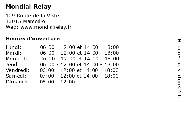 1 Mondial Relay (Distance: 3,58 km) 41 Chemin de la Nerthe, 13016 Marseille assurances, banques, mondial, mondial relay, relay, services 2 Mondial Relay (Distance: 4,30 km) - La Batarelle Haute, 13013 Marseille assurances, banques, mondial, mondial relay, relay, services 3 Mondial Relay (Distance: 9,58 km) 265 Avenue des Poilus, 13012 Marseille assurances, banques, mondial, mondial relay, relay, services 4 Mondial Relay (Distance: 11,23 km) 24 Boulevard de Saint Marcel, 13011 Marseille assurances, banques, mondial, mondial relay, relay, services 5 Mondial Relay (Distance: 11,69 km) 147 Boulevard Saint Marcel, 13011 Marseille assurances, banques, mondial, mondial relay, relay, services 6 Mondial Relay (Distance: 12,32 km) 304 Route Des 3 Lucs, 13011 Marseille assurances, banques, mondial, mondial relay, relay, services |