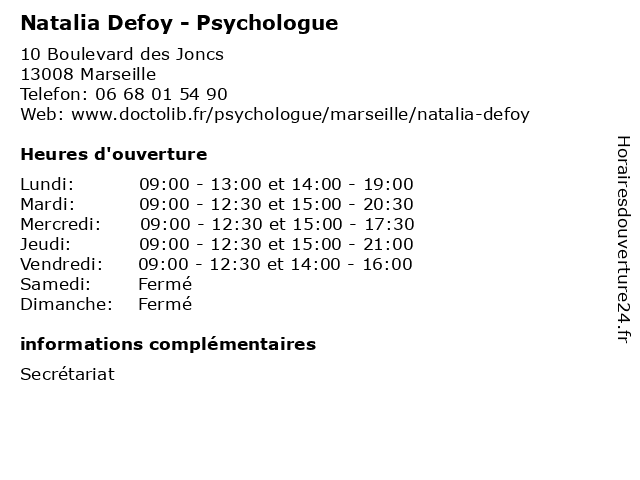| Mardi | 09:00-12:30 et 15:00-20:30 |