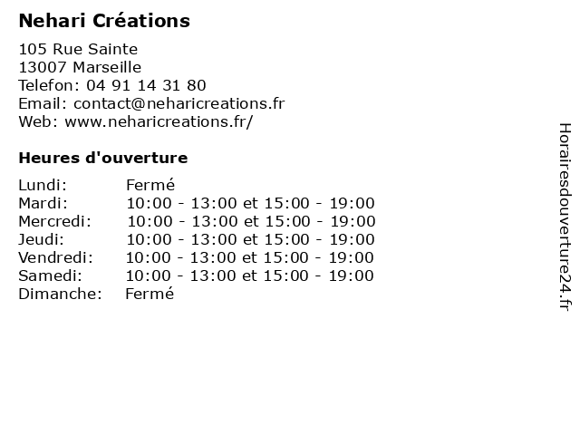 | Mercredi | 10:00-13:00 et 15:00-19:00 |