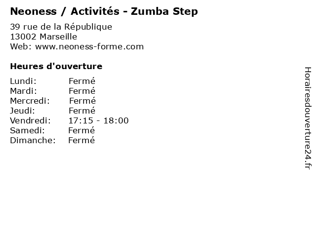 1 Neoness / Activités - Zumba (Distance: 0,00 km) 39 rue de la République, 13002 Marseille activités, exercise, fitness, health, neoness, outdoor, physical activities, sports, zumba 2 Neoness / Activités - Body Attack (Distance: 0,00 km) 39 rue de la République, 13002 Marseille activités, attack, body, exercise, fitness, health, neoness, outdoor, physical activities, sports 3 Neoness / Activités - Body Combat (Distance: 0,00 km) 39 rue de la République, 13002 Marseille activités, body, combat, exercise, fitness, health, neoness, outdoor, physical activities, sports 4 Neoness / Activités - Stretching (Distance: 0,00 km) 39 rue de la République, 13002 Marseille activités, exercise, fitness, health, neoness, outdoor, physical activities, sports, stretching 5 Neoness / Activités - Step Debutant (Distance: 0,00 km) 39 rue de la République, 13002 Marseille activités, debutant, exercise, fitness, health, neoness, outdoor, physical activities, sports, step 6 Neoness / Activités - Gym Zen (Distance: 0,00 km) 39 rue de la République, 13002 Marseille activités, exercise, fitness, gym, health, neoness, outdoor, physical activities, sports, zen |