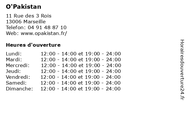 | Mardi | 12:00-14:00 et 19:00-24:00 |