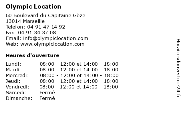 1 Olympic Location (Distance: 3,18 km) 26 Boulevard Charles Nédelec, 13001 Marseille france, location, location de voitures, olympic, olympic location, service 2 Olympic Location (Distance: 4,06 km) 30 Rue des Orgues, 13004 Marseille location, olympic, services, vehicules 3 Olympic Location (Distance: 13,85 km) - Le relais de Provence D6, 13320 Bouc-Bel-Air location, olympic, services, utilitaire, vehicules 4 Olympic Location (Distance: 15,17 km) - Rue René Cailloux, 13700 Marignane france, location, location de voitures, olympic, olympic location, service 5 Olympic Location (Distance: 16,94 km) 115 rue Claude-Nicolas Ledoux, 13290 Aix-les-Milles france, location, location de voitures, olympic, olympic location, service 6 Olympic Location (Distance: 19,07 km) 474 Avenue de la fleuride, 13400 Aubagne france, location, location de voitures, olympic, olympic location, service |