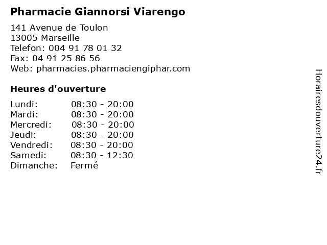 | Lundi | 08:30-20:00 |