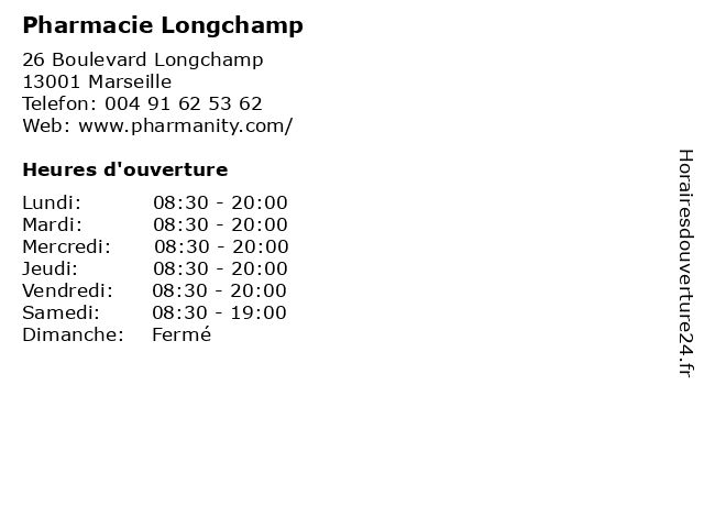 | Lundi | 08:30-20:00 |