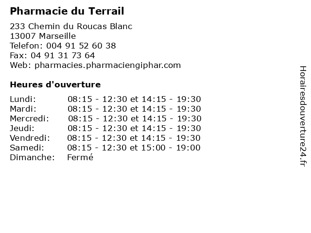| Lundi | 08:15-12:30 et 14:15-19:30 |