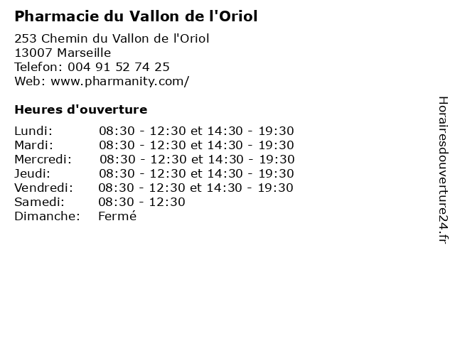 Lundi | 08:30-12:30 et 14:30-19:30 |