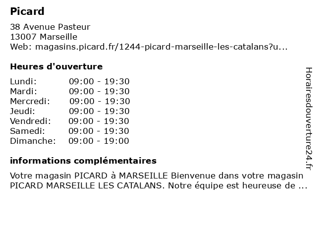Votre magasin PICARD à MARSEILLE Bienvenue dans votre magasin PICARD MARSEILLE LES CATALANS. Notre équipe est heureuse de vous accueillir et pourra vous conseiller avec professionnalisme et en to...