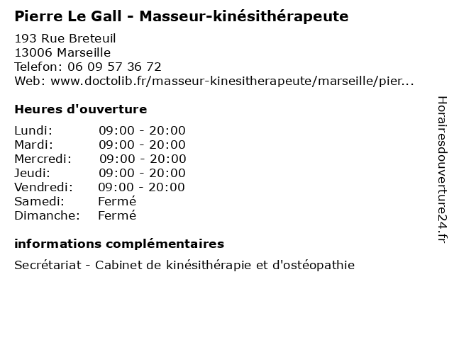 1 Dr Catherine Le Gall - Médecin généraliste (Distance: 21,40 km) 57 Avenue de Nice, 13120 Gardanne catherine, docteur, dr, gall, generaliste, généraliste, le, medical, médecin, soin 2 Dr Jean-Luc Le Gall - Médecin généraliste (Distance: 45,69 km) 104 Avenue Clovis Hugues, 83200 Toulon consultation, docteur, domicile, dr, en, gall, générale, généraliste, jean, le, luc, médecin, médecine, santé, visite 3 Dr Nicole Le Gall - Médecin généraliste (Distance: 56,25 km) 10 Place Général de Gaulle, 83390 Cuers consultation, docteur, dr, gall, généraliste, le, med, médecin, nicole, traitement 5 Marie Roy - Masseur-kinésithérapeute (Distance: 0,00 km) 193 Rue Breteuil, 13006 Marseille docteur, kine, kinesitherapeute, kinésithérapeute, marie, masseur, roy 6 Dr Pierre Lehmann - Radiologue (Distance: 0,07 km) 77 Rue Du Docteur Escat, 13006 Marseille bouchard, clinique, diagnostique, dr, imagerie, lehmann, médicale, pierre, radiologie, radiologue, service, thérapeutique |