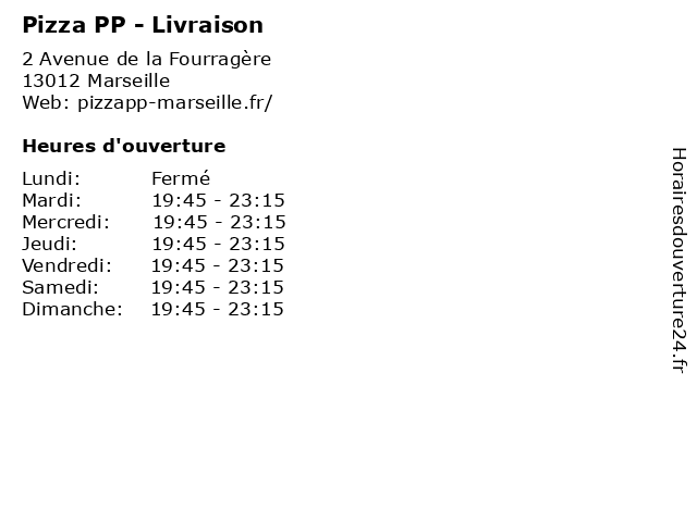 1 Pizza PP (Distance: 0,00 km) 2 Avenue de la Fourragère, 13012 Marseille commandes, pizza, pizzeria, place, pp, restaurants, sur 2 Pizza PP (Distance: 0,21 km) 2 Avenue de la Fourragère, 13012 Marseille boissons, nourriture, pizza, pp, restaurants, service 4 Topolino Pizza (Distance: 3,22 km) 102 Boulevard Libération, 13004 Marseille bistrot, pizza, pizzeria, restaurant, topolino 6 |