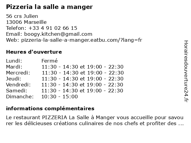 Mercredi | 11:30-14:30 et 19:00-22:30 |