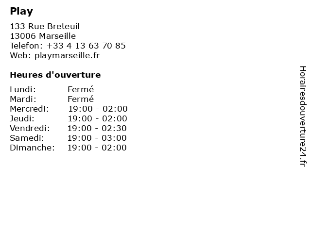 | Vendredi | 19:00-02:30 |