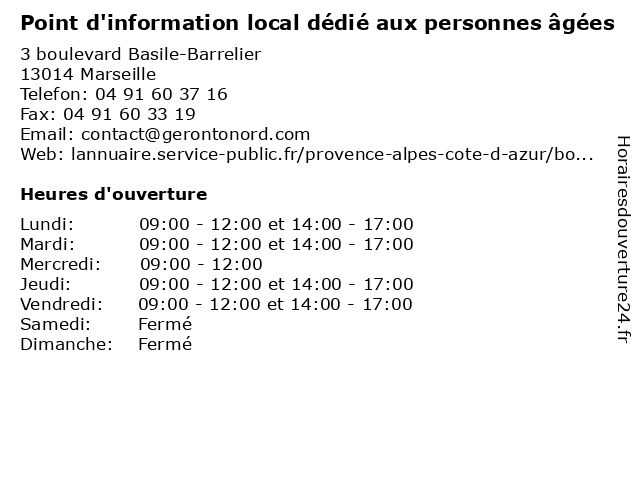 | Mardi | 09:00-12:00 et 14:00-17:00 |
