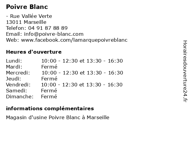 2 Le Salon Blanc (Distance: 1,43 km) 43 rue de l'Audience, 13011 Marseille blanc, cérémonie, le, mariage, robe, salon, tenue 3 Dr. Michel Blanc - Médecine générale (Hôpital de la Timone) (Distance: 7,61 km) 264 Rue St Pierre, 13385 Marseille blanc, consultation, de, docteur, dr., générale, hôpital, la, medecins, michel, médecine, santé, timone 4 Restaurant Poivre et Sel (Distance: 8,45 km) 71 Rue Borde, 13008 Marseille bar, brasserie, café, et, poivre, restaurant, restauration, sel 5 Dr. Pierre Blanc - Pediatrie (Consultation sur rendez-vous) (Distance: 8,94 km) 65 avenue du prado, 13006 Marseille blanc, consultation, docteur, dr., medecins, pediatrie, pierre, rendez, santé, sur, vous 6 Maître Olivier Blanc - Avocat (Distance: 9,19 km) 3 rue de Village, 13006 Marseille avocat, avocate, avocats, blanc, civils, droits, juridiques, maître, olivier |