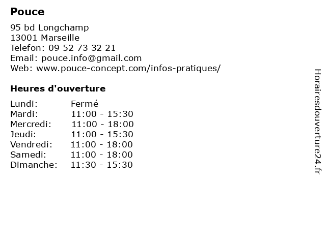 1 Sur Le Pouce (Distance: 1,05 km) 2 Rue Des Convalescents, 13001 Marseille alimentaire, le, plats, pouce, restaurants, sur 2 Pouce Jean Philippe (Distance: 10,81 km) 54 Avenue Du 8 Mai 1945, 13240 Septemes Les Vallons boucheries, jean, philippe, poissonneries, pouce 3 Mac Tom Pouce (Distance: 24,74 km) , Cité, 13100 Aix En Provence caregivers houses, child care, family home, home care, kindergartens, mac, micro-nurseries, parental home, pouce, tom 4 Tom Pouce (Distance: 27,49 km) , Chemin De Saint Marc, 13790 Rousset caregivers houses, child care, family home, home care, kindergartens, micro-nurseries, parental home, pouce, tom 6 Restaurant Mémé (Distance: 0,08 km) 84 Boulevard Longchamp, 13001 Marseille bar, bistro, bistrot, brasserie, café, mémé, pub, restaurant, restauration, resto |