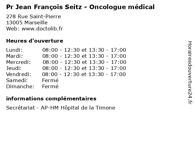 | Jeudi | 08:00-12:30 et 13:30-17:00 |