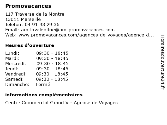 1 Promovacances (Distance: 7,42 km) 276 Avenue du Prado, 13008 Marseille agence, croisieres, hotels, marseille, prado, promovacances, séjours, vacances, vols 2 Promovacances (Distance: 8,96 km) 9 Quai du Lazaret, 13002 Marseille cafe, enfants.chaussures, lingerie, mode hemmes, mode homme, promovacances, restaurant 3 Promovacances (Distance: 10,37 km) 1 Boulevard du Littoral, 13002 Marseille agence, billet d'avion et hôtel pour votre club, promovacances, séjour, voyage 4 Promovacances (Distance: 12,16 km) 11 Avenue Saint Antoine, 13016 Marseille agence, billet d'avion et hôtel pour votre club, promovacances, séjour, voyage 5 Promovacances (Distance: 12,20 km) 15 Avenue de Saint Antoine, 13015 Marseille boutique, promovacances, tourisme, vacances 6 Hôtel Première Classe Marseille Est - La Valentine (Distance: 0,00 km) 117 Traverse de la Montre, 13011 Marseille bar, chambres, classe, est, hotel, hôtel, la, marseille, premiere, première, restaurant, service, valentine |