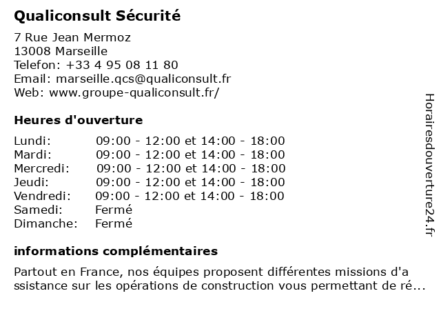 2 Qualiconsult Exploitation (Distance: 0,06 km) 7-9 Rue Jean Mermoz, 13008 Marseille exploitation, qualiconsult 3 Qualiconsult Immobilier (Distance: 0,06 km) 7-9 Rue Jean Mermoz, 13008 Marseille immobilier, qualiconsult 4 Miroiterie Habitat Sécurité (Distance: 0,45 km) 167 Rue du Rouet, 13008 Marseille dépannage, habitat, miroiterie, porte, securite, serrurerie, sécurité, verre, vitrerie 5 Auto Sécurité (Distance: 1,82 km) 81 Boulevard Sainte-Marguerite, 13009 Marseille auto, automobiles, contrôle technique, motos, sécurité 6 Janus Sécurité France (Distance: 2,34 km) 10 Rue de la République, 13001 Marseille entreprise, france, interventions, janus, mécaniques, sécurité |