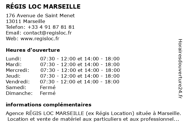 | Lundi | 07:30-12:00 et 14:00-18:00 |