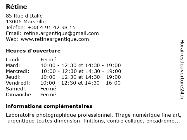 | Mercredi | 10:00-12:30 et 14:30-19:00 |