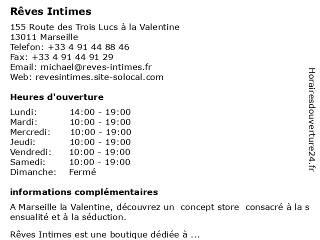 | Dimanche | Fermé |