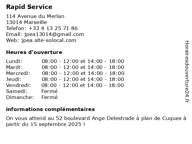 | Mardi | 08:00-12:00 et 14:00-18:00 |