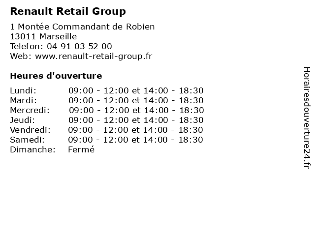 1 Renault Retail Group (Distance: 7,83 km) 1565 Chemin de ceinture, 13400 Aubagne atelier, automobiles, garage, group, mecanique, motos - concessionnaire, renault, retail 2 Renault Retail Group (Renault Assistance) (Distance: 0,00 km) 1 Montée Commandant de Robien, 13011 Marseille assistance, automobiles, garage, group, motos - concessionnaire, renault, retail 3 Renault Retail Group - Centre Pro + (Distance: 0,09 km) 3 Montée Commandant de Robien, 13011 Marseille automobiles, centre, garage, group, motos - concessionnaire, pro, renault, retail 4 Renault Retail Group - Véhicule d'Occasion (Distance: 0,09 km) 3 Montée Commandant de Robien, 13011 Marseille automobiles, d'occasion, garage, group, motos - concessionnaire, renault, retail, véhicule 5 Renault Retail Group - Dacia Box (Distance: 0,09 km) 3 Montée Commandant de Robien, 13011 Marseille automobiles, box, dacia, garage, group, motos - concessionnaire, renault, retail 6 Renault Retail Group - Minute service (Distance: 0,09 km) 3 Montée Commandant de Robien, 13011 Marseille automobiles, garage, group, minute, motos - concessionnaire, renault, retail, service |