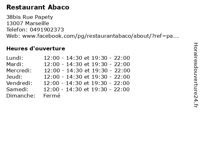 | Mardi | 12:00-14:30 et 19:30-22:00 |