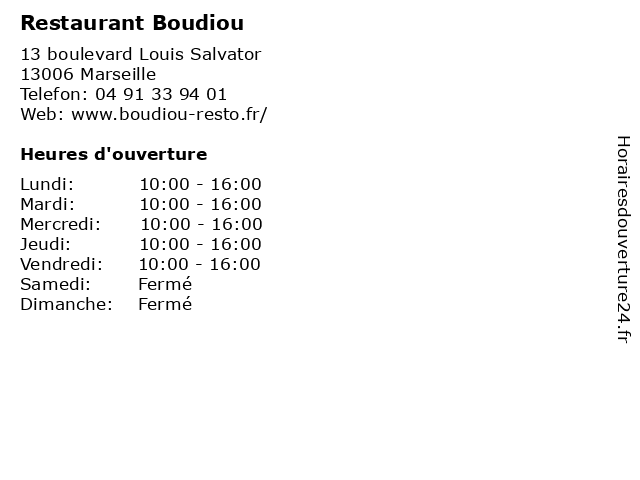 | Vendredi | 10:00-16:00 |