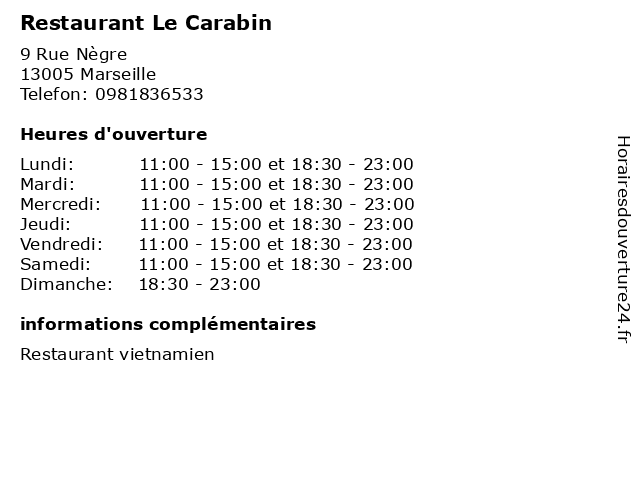 | Mardi | 11:00-15:00 et 18:30-23:00 |