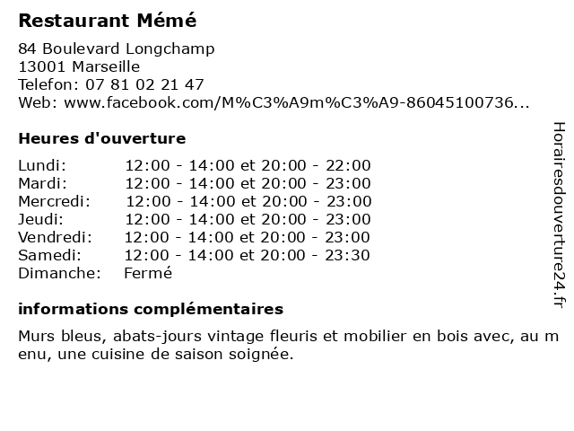 | Mardi | 12:00-14:00 et 20:00-23:00 |