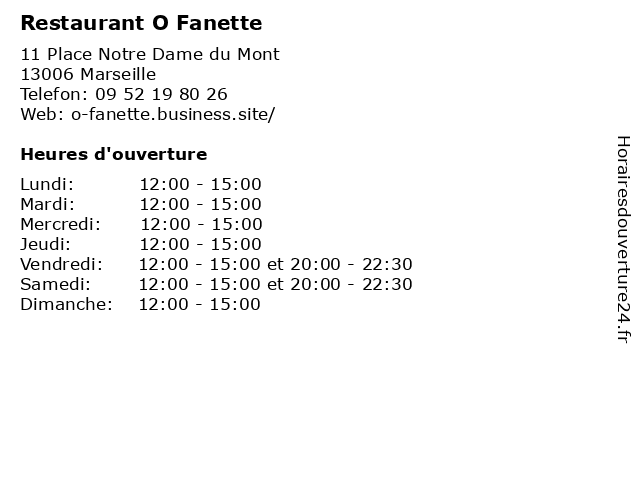 | Samedi | 12:00-15:00 et 20:00-22:30 |
