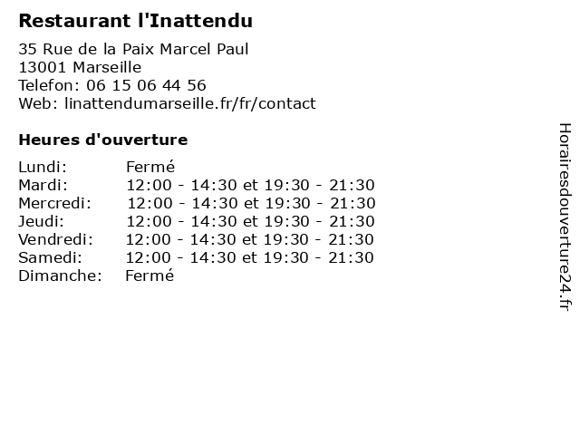 | Jeudi | 12:00-14:30 et 19:30-21:30 |