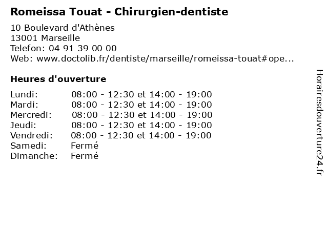 | Lundi | 08:00-12:30 et 14:00-19:00 |