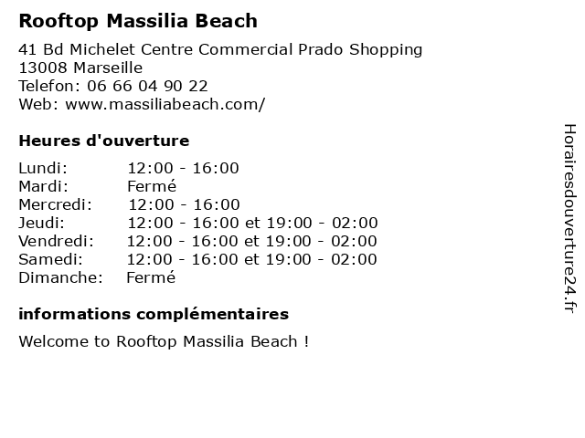 | Samedi | 12:00-16:00 et 19:00-02:00 |