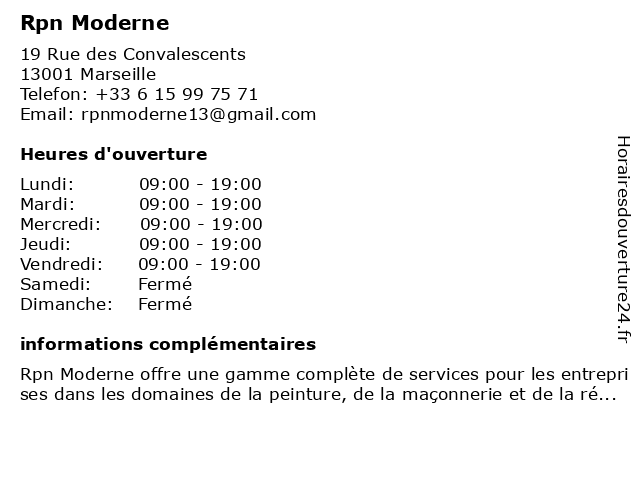 | Lundi | 09:00-19:00 |