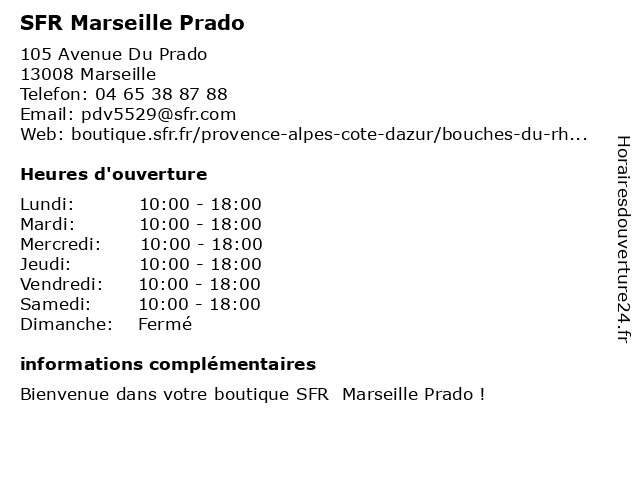 Termes de recherche pour SFR Marseille Prado:marseille, sfr, prado, compagnie de téléphone, vente et installation du câble et du satellite, magasin de téléphones mobiles |