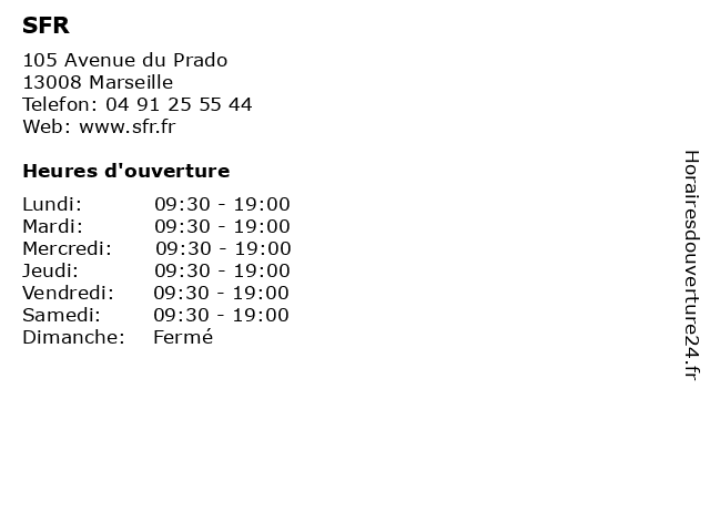 1 SFR (Distance: 0,95 km) 159 Rue de Rome, 13006 Marseille abonnements de téléphonie mobile ou fixe fixe ou carte prépayée, accès internet haut débit ou la fibre optique ainsi que des abonnements à des bouquets de chaînes de télévision ., sfr, téléphones mobiles 2 SFR (Distance: 1,46 km) 74 Avenue de Mazargues, 13008 Marseille abonnements de téléphonie mobile ou fixe fixe ou carte prépayée, accès internet haut débit ou la fibre optique ainsi que des abonnements à des bouquets de chaînes de télévision ., sfr, téléphones mobiles 3 SFR (Distance: 1,48 km) 57 Place Jean Jaures, 13005 Marseille abonnements de téléphonie mobile ou fixe fixe ou carte prépayée, accès internet haut débit ou la fibre optique ainsi que des abonnements à des bouquets de chaînes de télévision ., sfr, téléphones mobiles 4 SFR (Distance: 1,76 km) 21 Rue Vacon, 13001 Marseille abonnements de téléphonie mobile ou fixe fixe ou carte prépayée, accès internet haut débit ou la fibre optique ainsi que des abonnements à des bouquets de chaînes de télévision ., sfr, téléphones mobiles 5 SFR (Distance: 1,89 km) 40 La Canebière, 13001 Marseille abonnements de téléphonie mobile ou fixe fixe ou carte prépayée, accès internet haut débit ou la fibre optique ainsi que des abonnements à des bouquets de chaînes de télévision ., sfr, téléphones mobiles 6 SFR (Distance: 1,97 km) - Bourse, 13001 Marseille abonnements de téléphonie mobile ou fixe fixe ou carte prépayée, accès internet haut débit ou la fibre optique ainsi que des abonnements à des bouquets de chaînes de télévision ., sfr, téléphones mobiles |