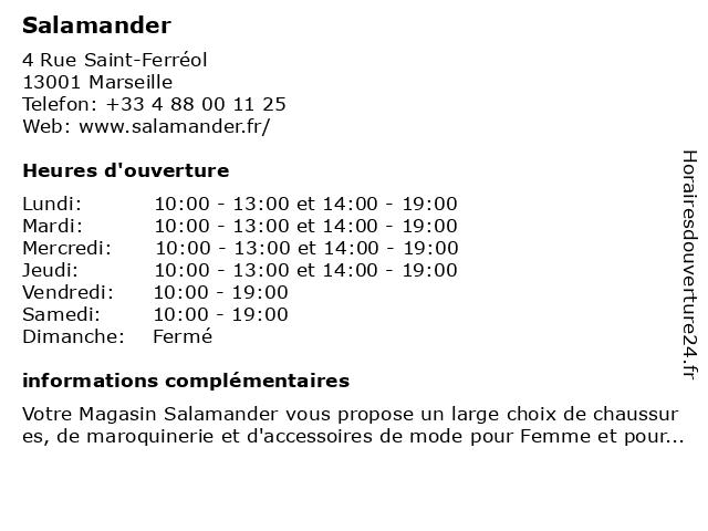 | Lundi | 10:00-13:00 et 14:00-19:00 |