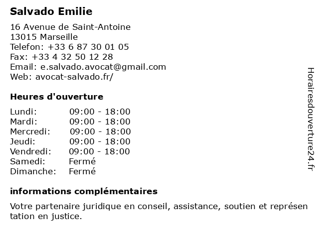 1 Maître Emilie Salvado - Avocate (Distance: 2,90 km) 2 rue Odette Jasse, 13015 Marseille avocate, avocats, civils, droits, emilie, juridiques, maître, salvado 2 Dr Emilie Zanin - Ophtalmologue (Distance: 5,77 km) - Rue Pierre Pierrel, 13480 Cabriès chirurgie, dr, emilie, glaucome, ophtalmologique, ophtalmologue, zanin 3 Dr Emilie Trotoux - Chirurgien-dentiste - secrétariat (Distance: 6,22 km) - Allée de la Demande, 13013 Marseille chirurgien, consultation, dentiste, docteur, dr, emilie, med, secrétariat, trotoux 4 Dr Emilie Dewarlez - Chirurgien-dentiste - secrétariat (Distance: 7,06 km) 16 Rue Albert Einstein, 13013 Marseille chirurgien, consultation, dentiste, dewarlez, docteur, dr, emilie, med, secrétariat 5 Emilie Audoueineix - Pédicure-podologue (Distance: 8,00 km) 7 Avenue Saint-Jean, 13002 Marseille audoueineix, cheville, emilie, orteil, pied, podologue, pédicure 6 Emilie Audoeineix - Pédicure-podologue (Distance: 8,00 km) 7 Avenue Saint-Jean, 13002 Marseille audoeineix, emilie, médecin, médecine, médical, pharmaceutique, podologue, pédicure, secretariat, traitement |