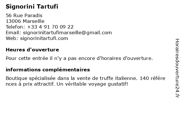 1 SIGNORINI TARTUFI (Distance: 26,70 km)55 Rue d'Italie, 13100 Aix-en-Provence signorini, tartufi