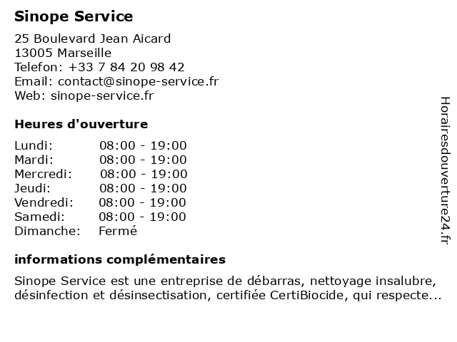 | Samedi | 08:00-19:00 |