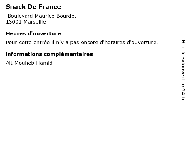 3 Snack De l'Universite (Distance: 0,11 km) Snack De l Universite Angle Voie Acces Gare Rout St Charles, 13003 Marseille mareva, restaurants, snack, universite 6 Snack Sina (Distance: 0,80 km) 70 Rue Kleber, 13003 Marseille gouda, ibrahim, mahmoud, mohamed, restaurants, sina, snack |