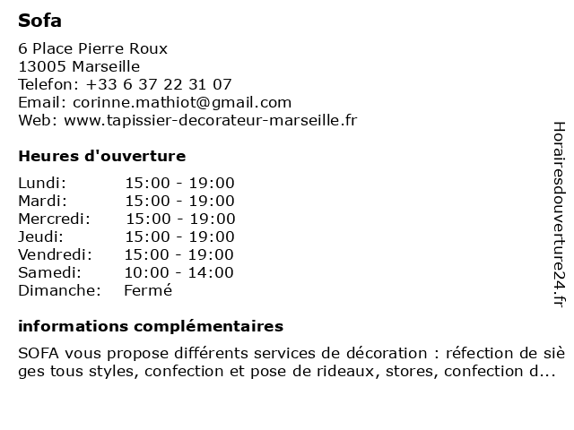 1 Maisons du Monde (Distance: 1,65 km) 54/56 rue Paradis, 13006 Marseille du, furniture, garment, maisons, monde, small aplliances, sofa 3 Sofa Du Luberon (Distance: 42,96 km) 1000 Avenue Charles de Gaulle, 13860 Peyrolles-en-Provence du, luberon, sofa 4 Conforama (Distance: 51,70 km) n/a Avenue de l'Université, 83160 La Valette Du Var baby, conforama, furniture, garment, kitchen, living room, small aplliances, sofa |