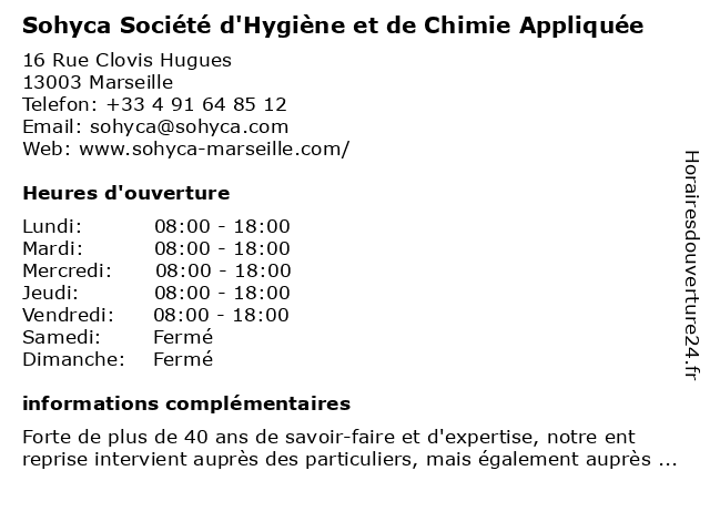 Termes de recherche pour Sohyca Société d'Hygiène et de Chimie Appliquée:et, de, societe, chimie, d'hygiène, appliquee, sohyca |