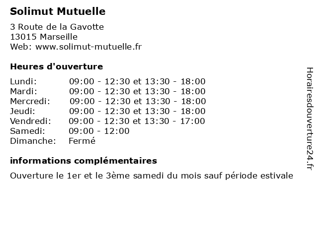 1 Solimut Mutuelle (Distance: 0,09 km) 166-170 Avenue de Saint-Antoine, 13015 Marseille mutuelle, mutuelles, services, solimut 2 Solimut Mutuelle (Distance: 2,78 km) 138 Avenue de Saint-Louis, 13015 Marseille agence, assurance, complémentaire, mutuelle, prévoyance, santé, solimut 3 Solimut Mutuelle (Distance: 4,54 km) 1 Chemin du Littoral, 13002 Marseille agence, assurance, complémentaire, mutuelle, prévoyance, santé, solimut 4 Solimut Mutuelle (Distance: 7,46 km) 115 Avenue de la Rose, 13013 Marseille agence, assurance, complémentaire, mutuelle, prévoyance, santé, solimut 5 Solimut Mutuelle (Distance: 8,50 km) 15 Chemin de Saint-Barnabé, 13004 Marseille agence, assurance, complémentaire, mutuelle, prévoyance, santé, solimut 6 Solimut Mutuelle (Distance: 10,57 km) 2 rue Pierre et Marie Curie, 13127 Vitrolles mutuelle, mutuelles, services, solimut |
