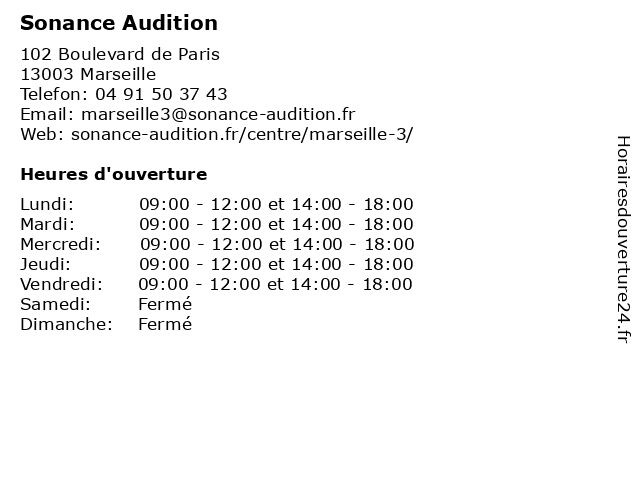 2 Sonance Audition (Distance: 19,31 km) 41 Boulevard Piot, 13360 Roquevaire audioprothésiste, auditif, audition, centre, magasins, sonance 3 Audioprothésiste Krys Audition (Distance: 0,93 km) 61 Rue De La Republique, 13002 Marseille audiologie, audioprothésiste, audition, krys 4 Carré Audition (Distance: 1,37 km) 32 cours Belsunce, 13001 Marseille auditif, audition, carre, carré, centre, santé, soins 5 Audition Conseil (Distance: 1,38 km) 15 Place Cadenat, 13003 Marseille aide auditive, audition, conseil, santé, spécialiste 6 Audioprothésiste Ideal Audition Marseille (Distance: 1,71 km) 16 Place Général de Gaulle, 13001 Marseille audioprothésiste, audition, ideal, marseille |