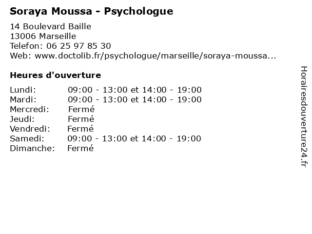 | Lundi | 09:00-13:00 et 14:00-19:00 |