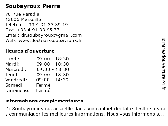 1 Dr Isabelle Pettenati Soubayroux - Chirurgien-dentiste (Distance: 2,15 km) 27 Boulevard Jean Moulin, 13005 Marseille chirurgien, consultation, dentiste, docteur, dr, isabelle, med, médecin, pettenati, soubayroux, traitement 2 Maître Caroline Pierre - Avocate (Distance: 0,04 km) 42 rue Montgrand, 13006 Marseille avocate, avocats, caroline, civils, droits, juridiques, maître, pierre 3 Maître Pierre-Philippe Cunique - Avocat (Distance: 0,05 km) 82 rue Paradis, 13006 Marseille avocat, avocats, civils, cunique, droits, juridiques, maître, philippe, pierre 4 Maître Pierre Zeghmar - Avocat (Distance: 0,06 km) 44 rue Montgrand, 13006 Marseille avocat, avocate, avocats, civils, droits, juridiques, maître, pierre, zeghmar 5 Maître René-Pierre Clauzade - Avocat (Distance: 0,13 km) 4 place Félix Baret, 13006 Marseille avocat, avocats, civils, clauzade, droits, juridiques, maître, pierre, rené 6 Maître Marie-Pierre Codognet - Avocate (Distance: 0,33 km) 11A rue Haxo, 13001 Marseille avocate, avocats, civils, codognet, droits, juridiques, marie, maître, pierre |
