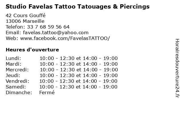 | Lundi | 10:00-12:30 et 14:00-19:00 |